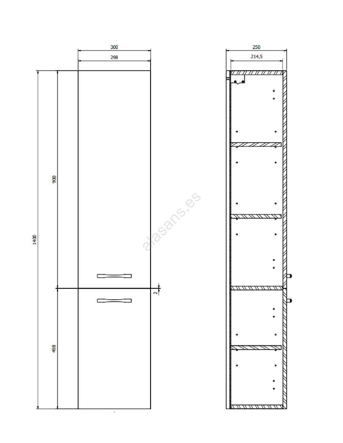 • El frente, el cuerpo y los estantes interiores del mueble están fabricados en aglomerado de 16mm.
