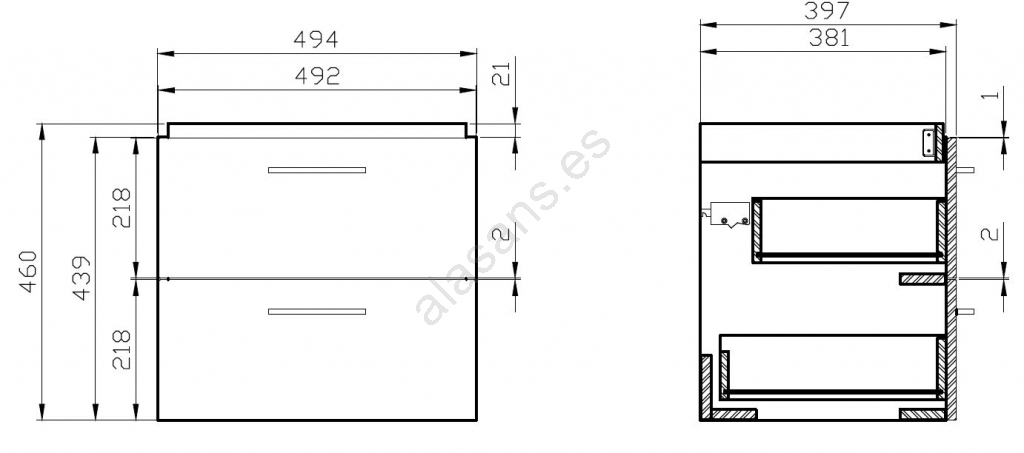 • El mueble cuenta con dos amplios cajones con cierre suave y tiradores cromados.