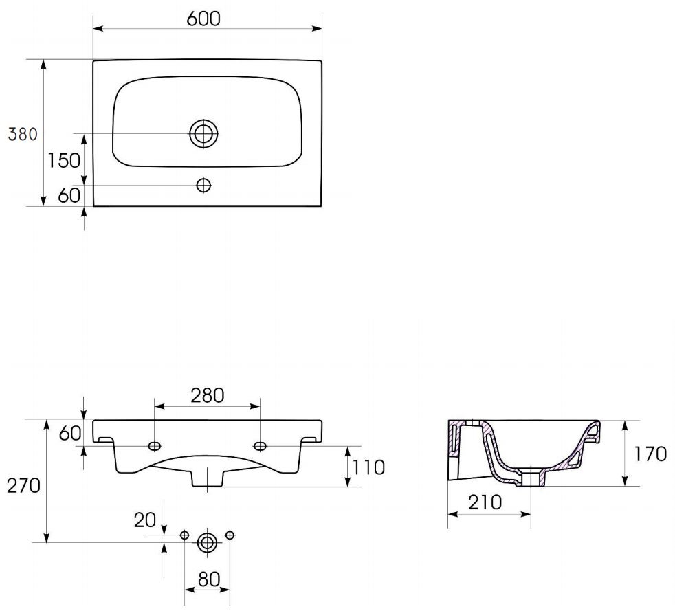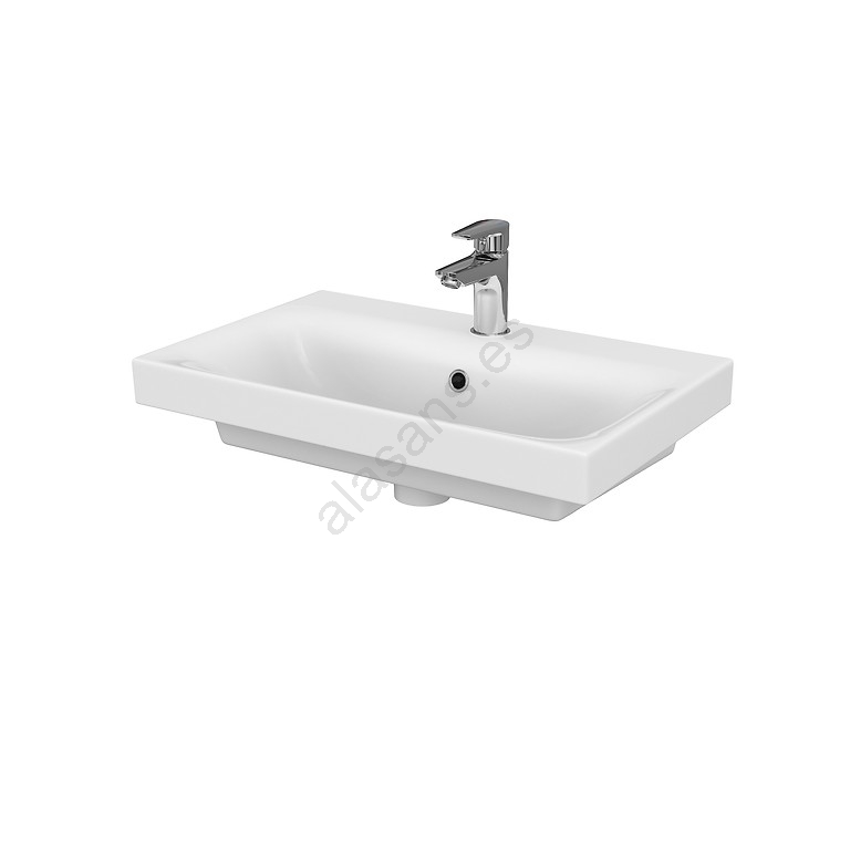 • El lavabo de cerámica presenta una forma rectangular clásica con orificio para grifería y rebosadero.