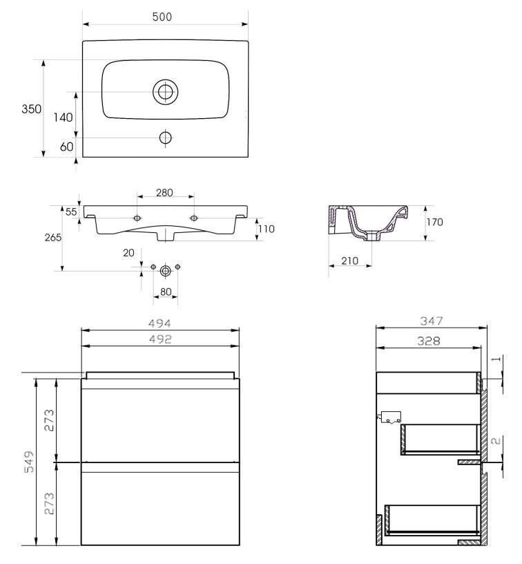 • Este mueble de baño suspendido se entrega con un lavabo de cerámica incluido.