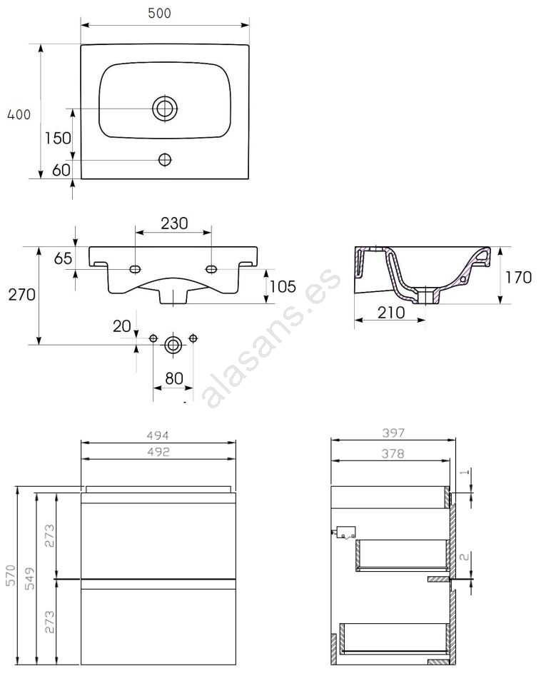• Este mueble colgante para baño se entrega con un lavabo cerámico incluido.