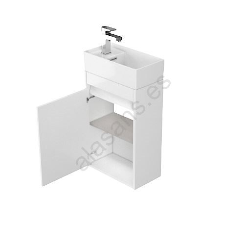 • El frente y el cuerpo del mueble están fabricados con aglomerado de 16 mm con acabado en laca blanca.