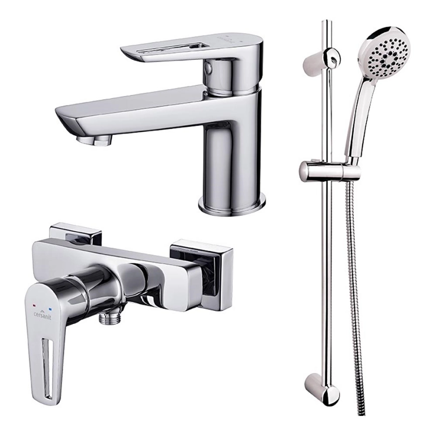 Cersanit S952-004 - Juego de ducha con grifo + grifo para lavabo MILLE cromo brillante