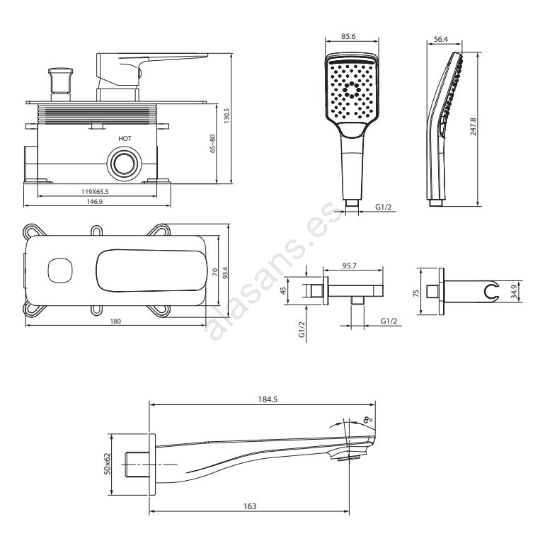 • manguera de ducha de PVC de 150 cm de longitud (certificado WRAS),