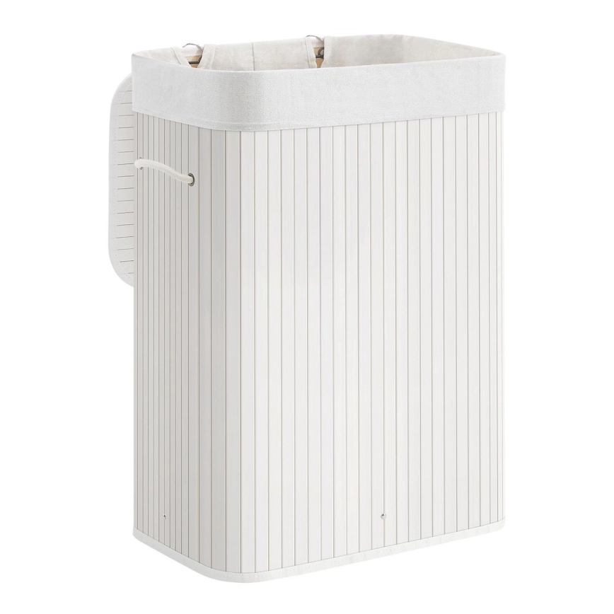 • Añade a tu hogar el encanto y la resistencia del bambú con este cesto de ropa de diseño elegante.
