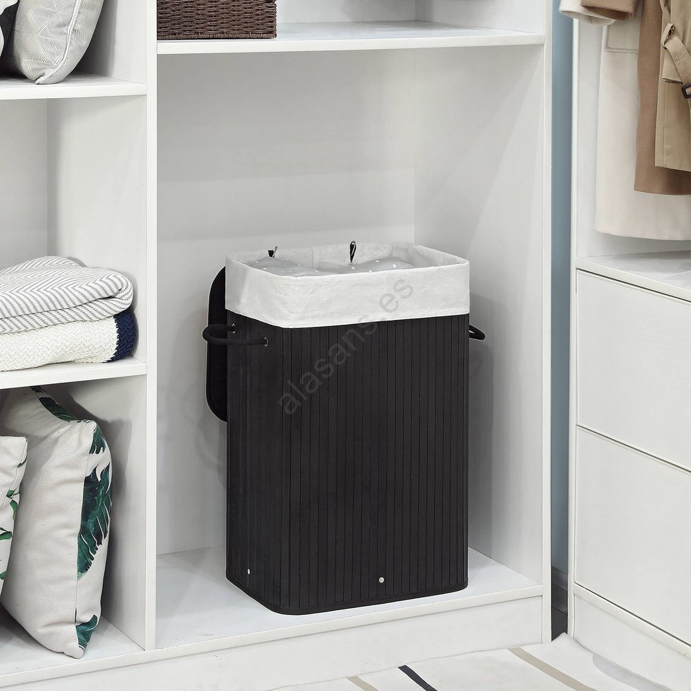 • Aporta a tu hogar el encanto y la resistencia del bambú con este estiloso cesto para la colada de diseño elegante.