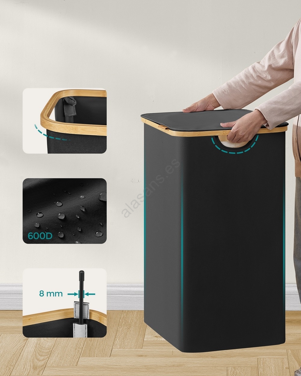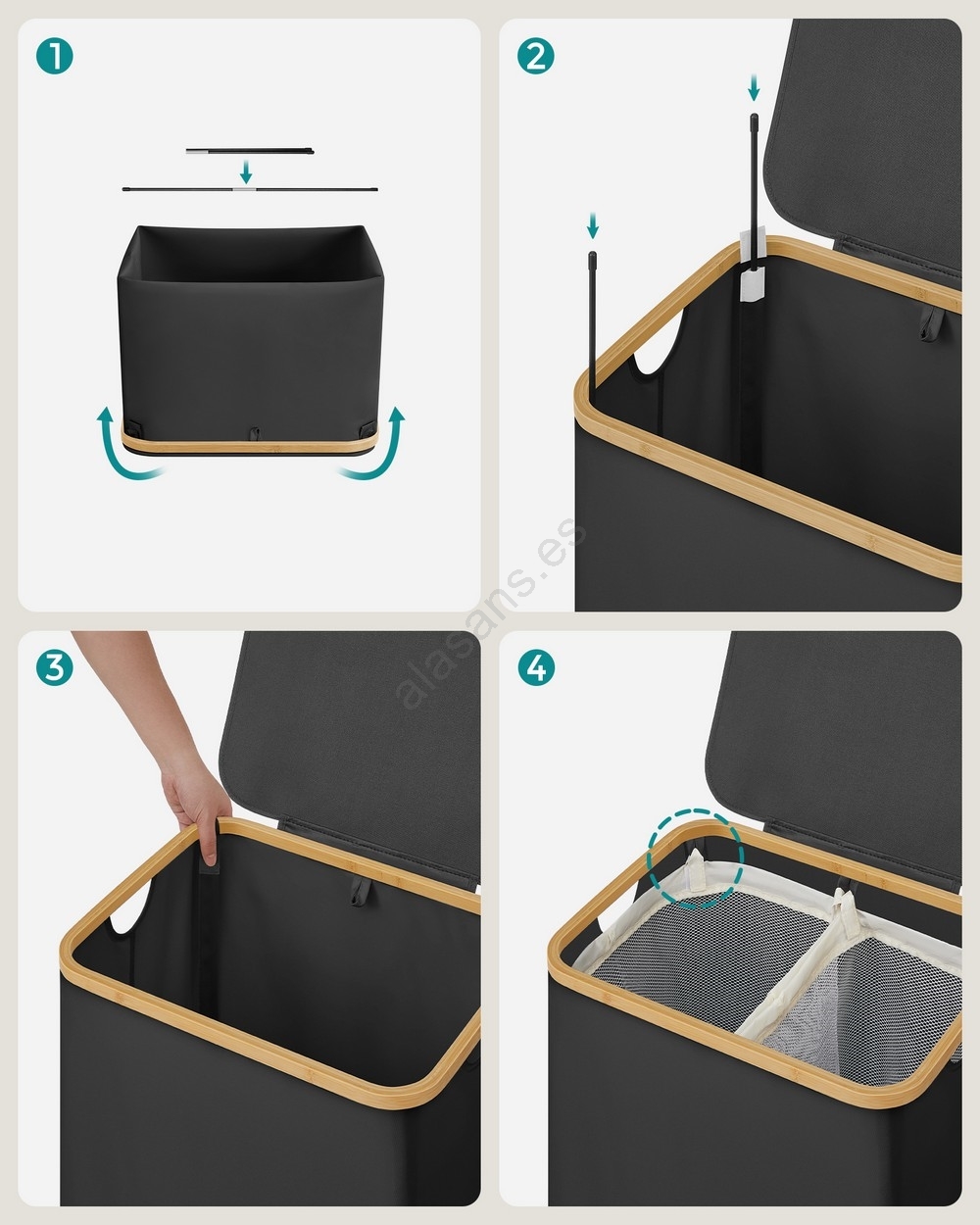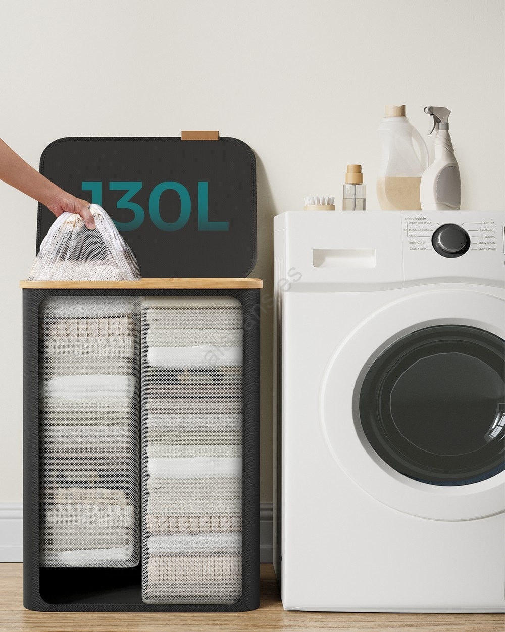 • La cesta para ropa tiene una gran capacidad 130 l para tu ropa, toallas y ropa de cama y 2 compartimentos que te permiten separar todo por colores.