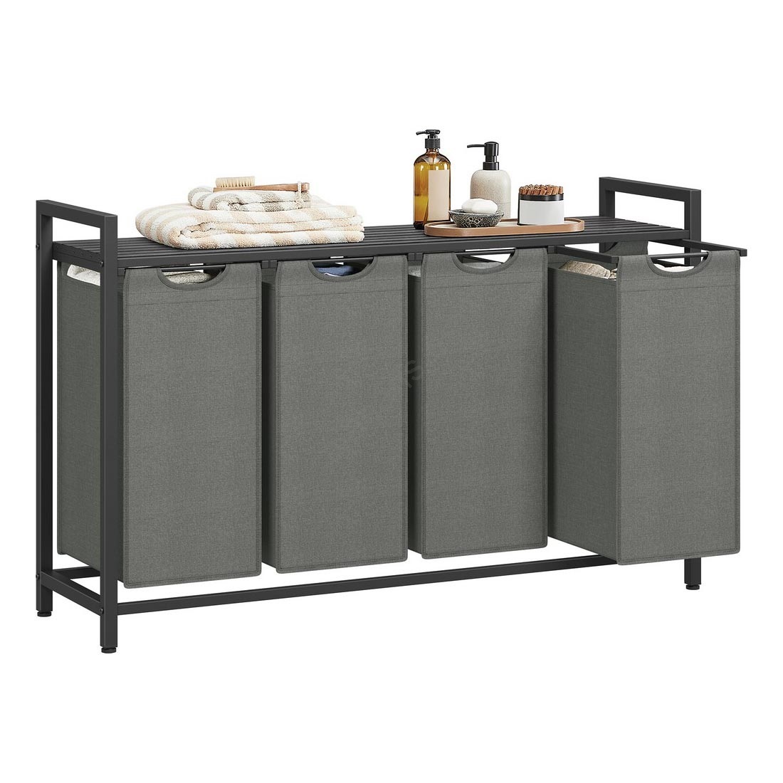 • 4 bolsas, 1 estante – Clasifica tu ropa en cuatro bolsas de tela (40 l por bolsa) y coloca detergentes, suavizantes y otros productos en el estante.