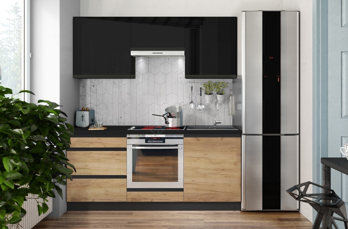 Mueble de cocina MARINA 180 cm roble craft/negro brillante