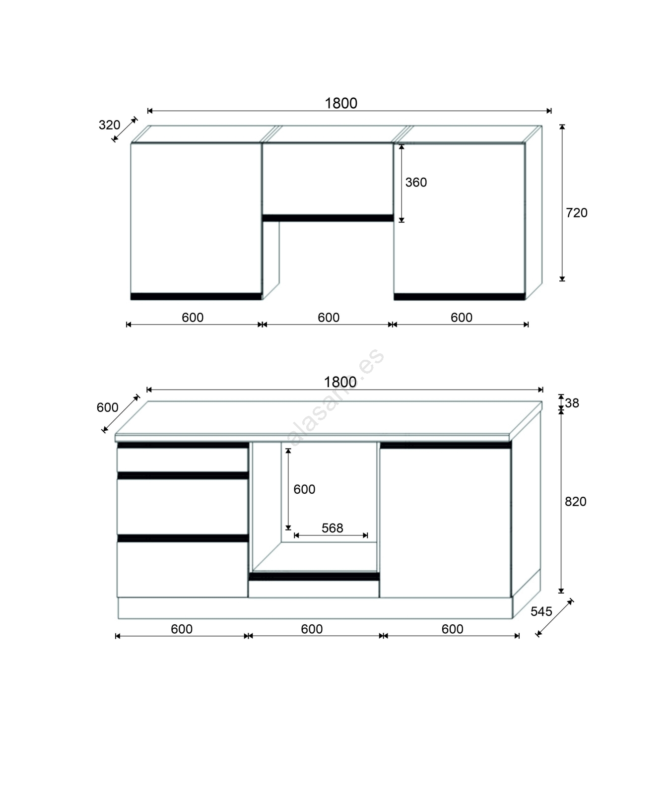 • La disposición de los armarios es modular, puede adaptar la cocina según sus propias preferencias.