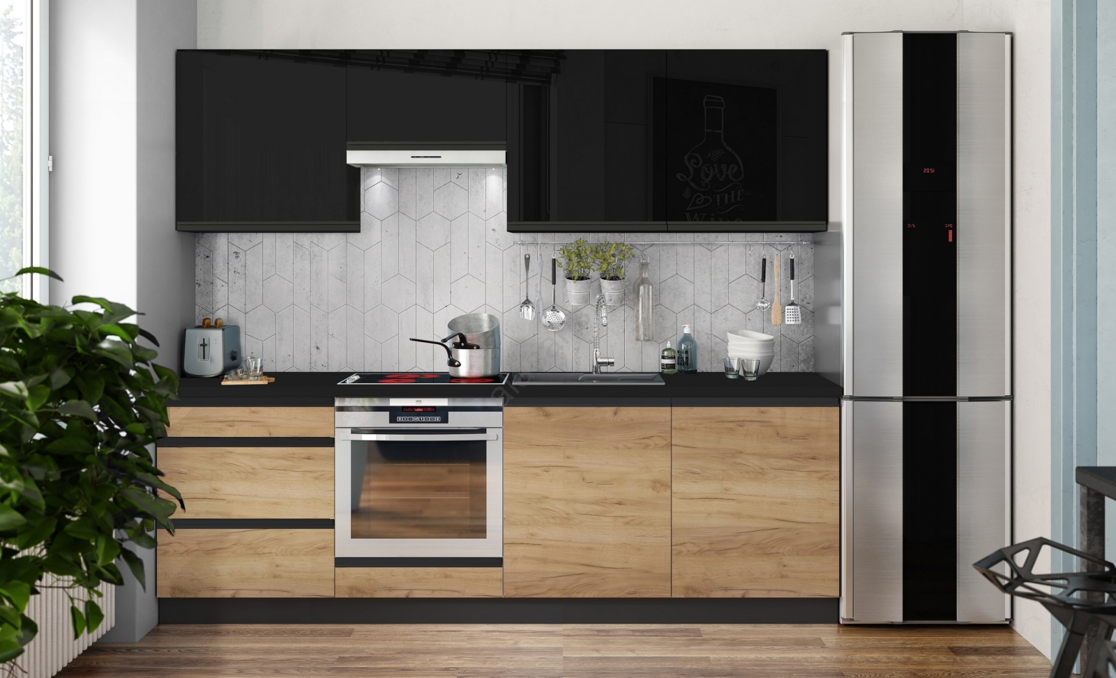 Mueble de cocina MARINA 240 cm roble craft/negro brillante