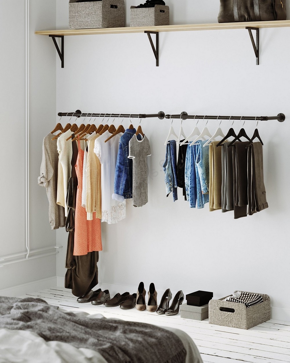 • Con 30 cm de distancia entre la pared y la barra colgante ofrecen espacio suficiente para la mayoría de perchas y prendas.