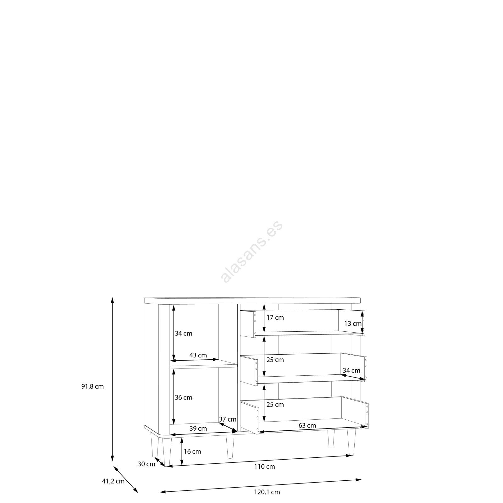 • Gracias a los cajones y al armario, ofrece un generoso espacio de almacenamiento para organizar los objetos de uso diario.