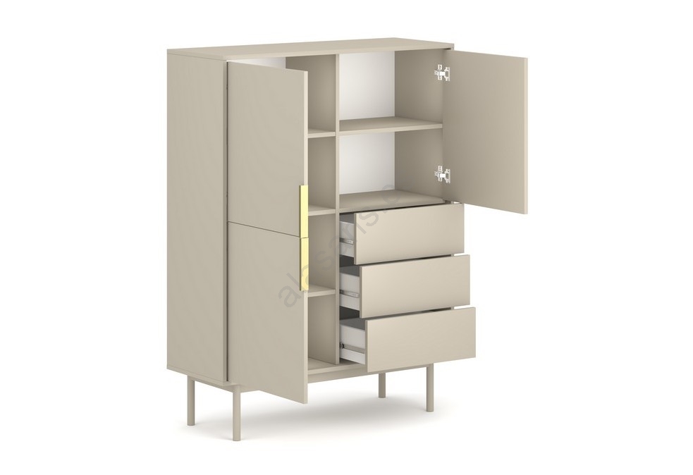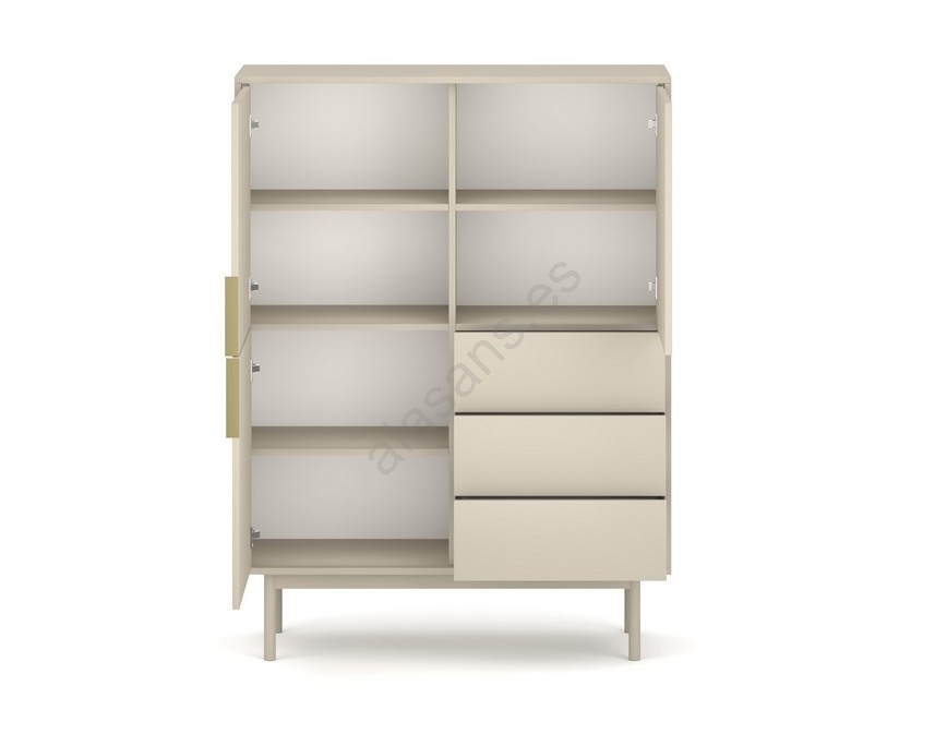 • Cuenta con dos puertas en el lado izquierdo y una puerta más junto con tres cajones en el lado derecho, para un almacenamiento ordenado.