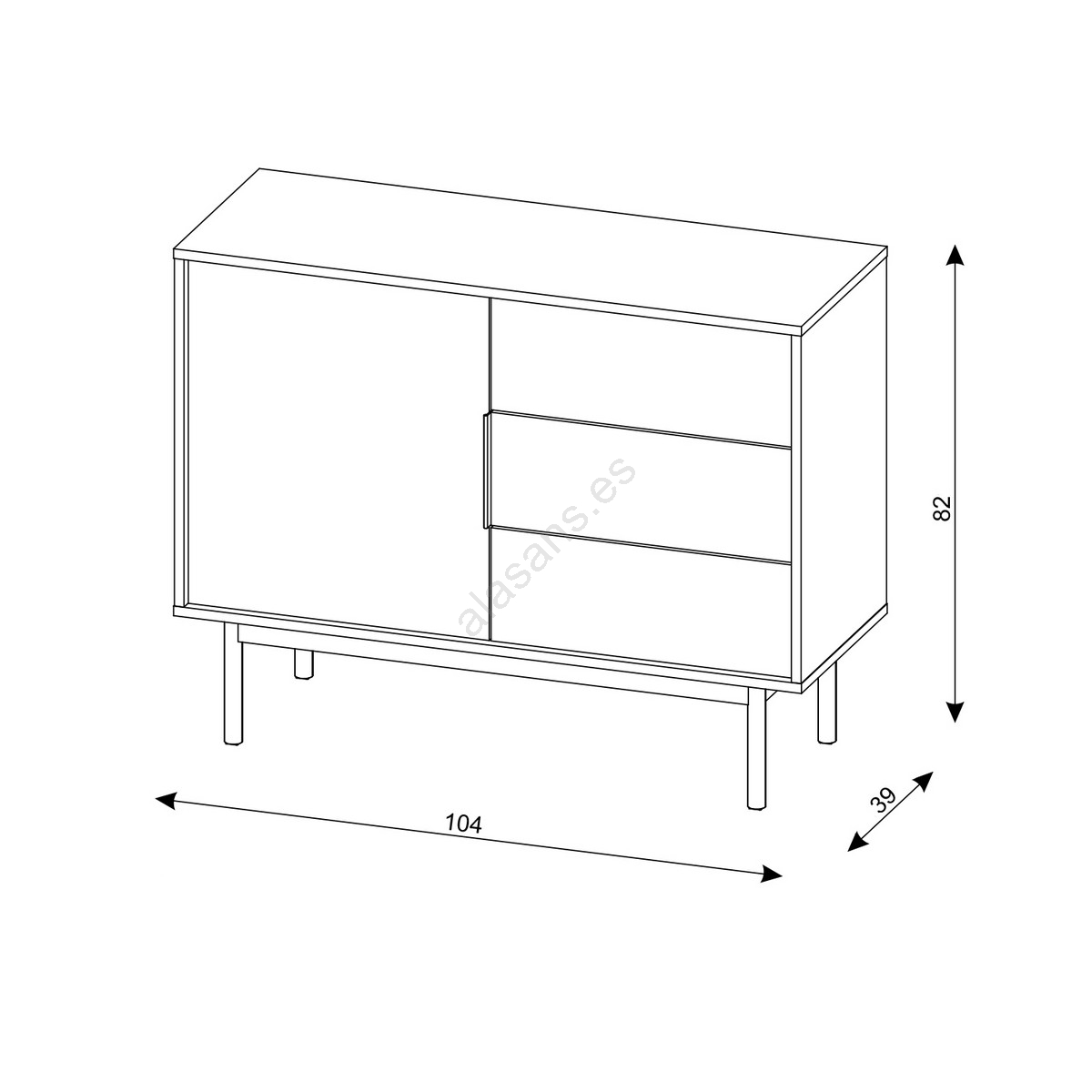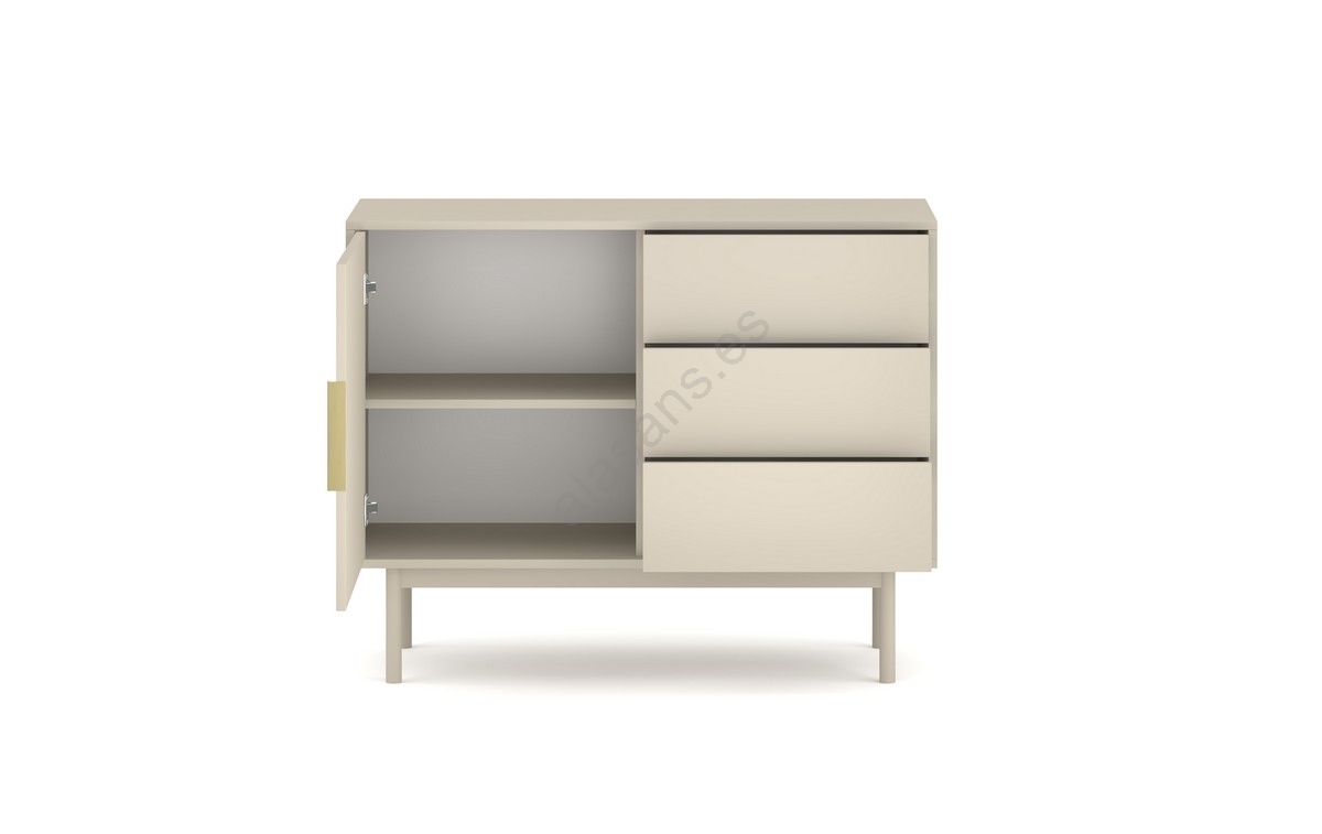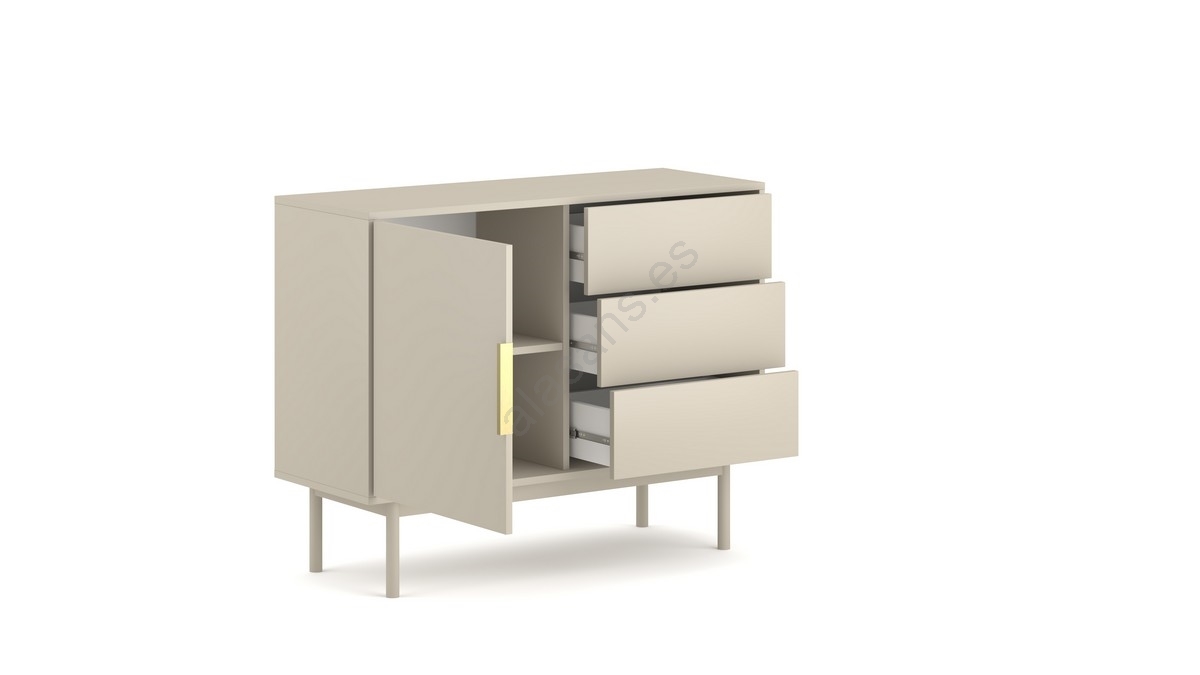 • Cuenta con una puerta en el lado izquierdo y tres cajones en el lado derecho, para un almacenamiento claro y ordenado.