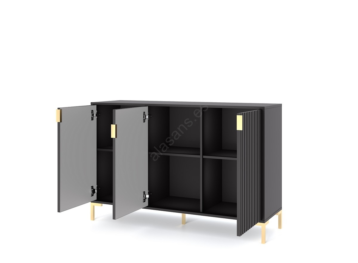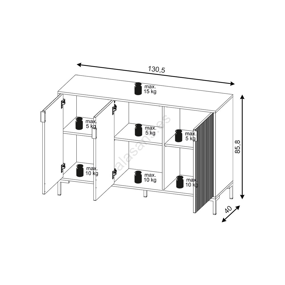 • Cuenta con seis estantes y tres puertas con acanalado vertical.