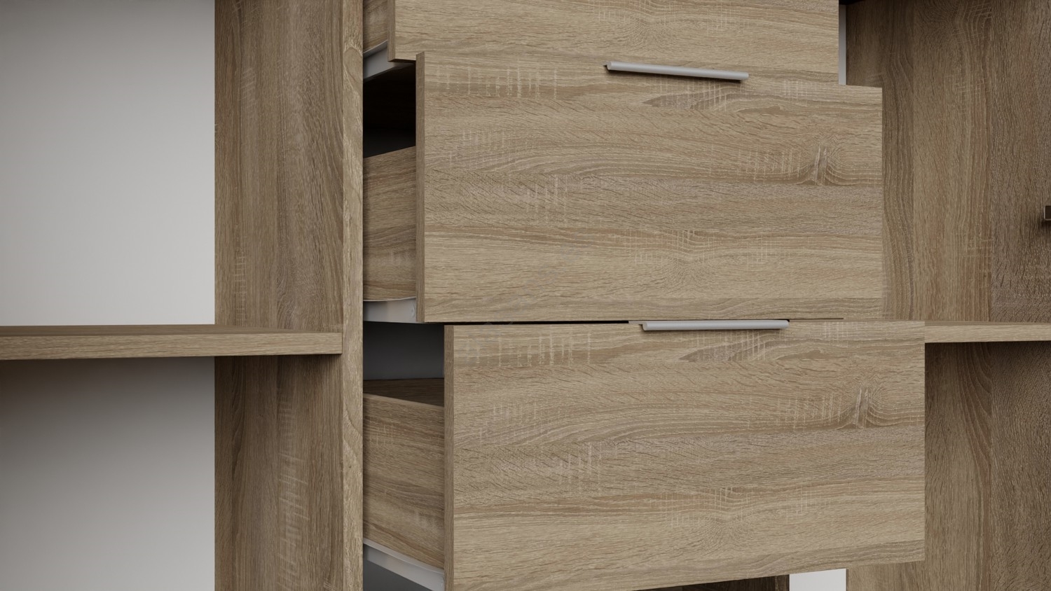 • Gracias a sus cajones y compartimentos ofrece un generoso espacio de almacenamiento para organizar los objetos de uso diario.