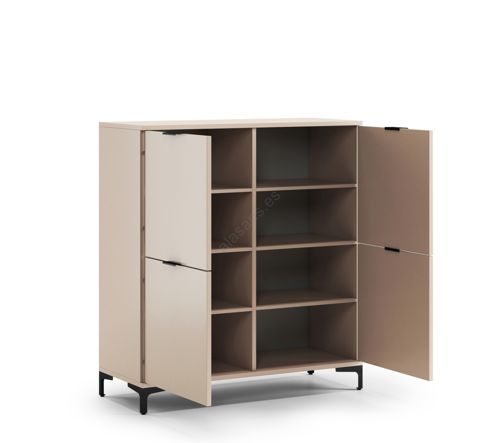• El mueble está fabricado en estilo loft y se caracteriza por patas y tiradores metálicos que le confieren un aire industrial adicional.