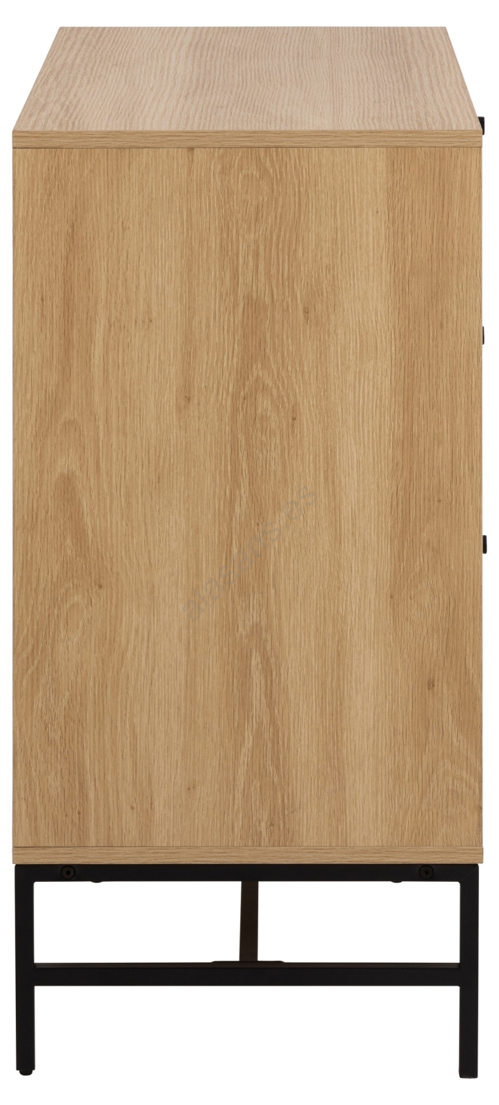• Estructura, 3 cajones y estantes en melamina craft rugosa, base de acero lacado con recubrimiento en polvo negro mate y textura rugosa.