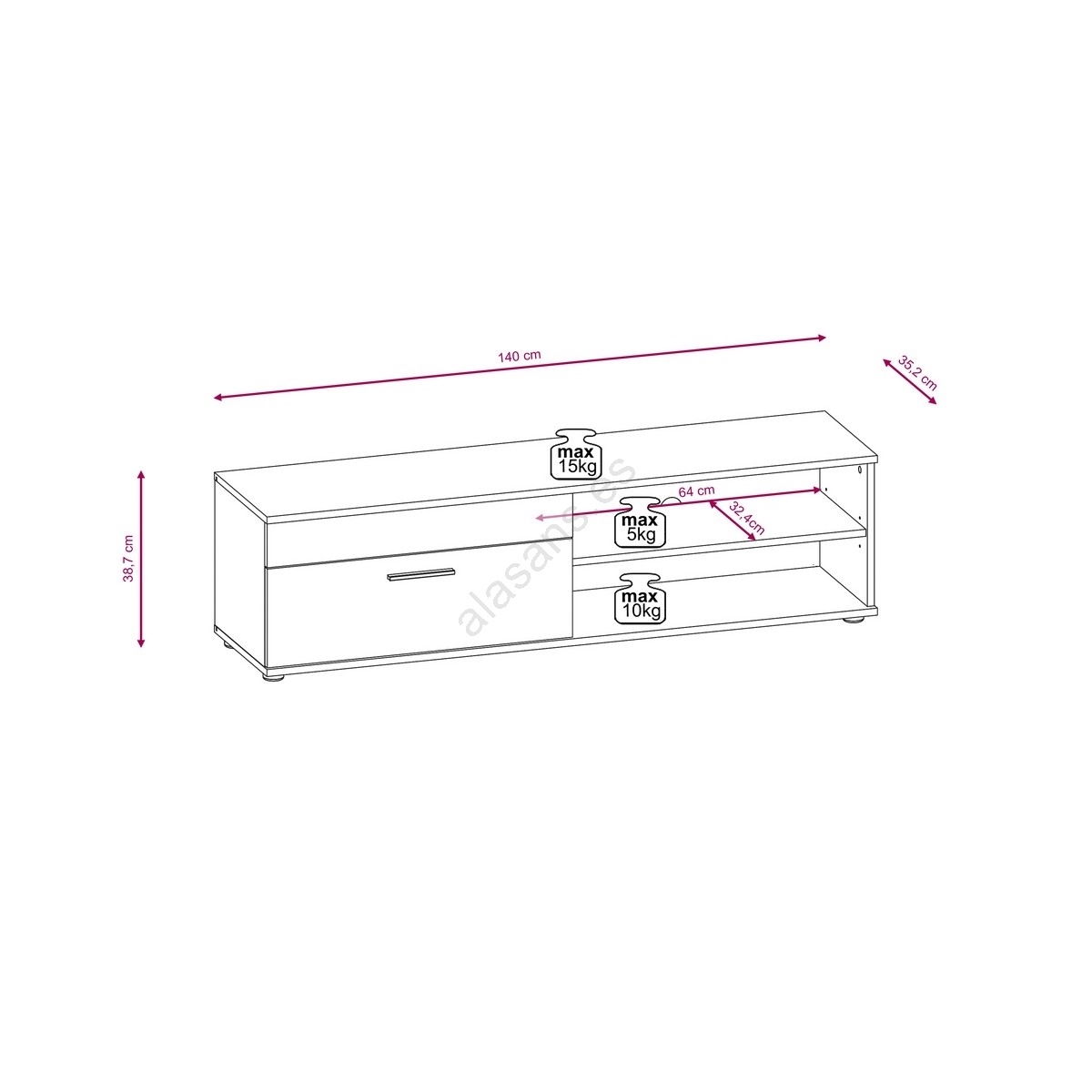• La construcción sólida del mueble garantiza durabilidad durante muchos años.