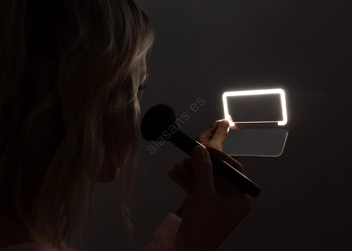 • El espejo puede iluminar hasta 3 horas con una sola carga y se puede recargar fácilmente mediante un cable USB conectado a una power bank.