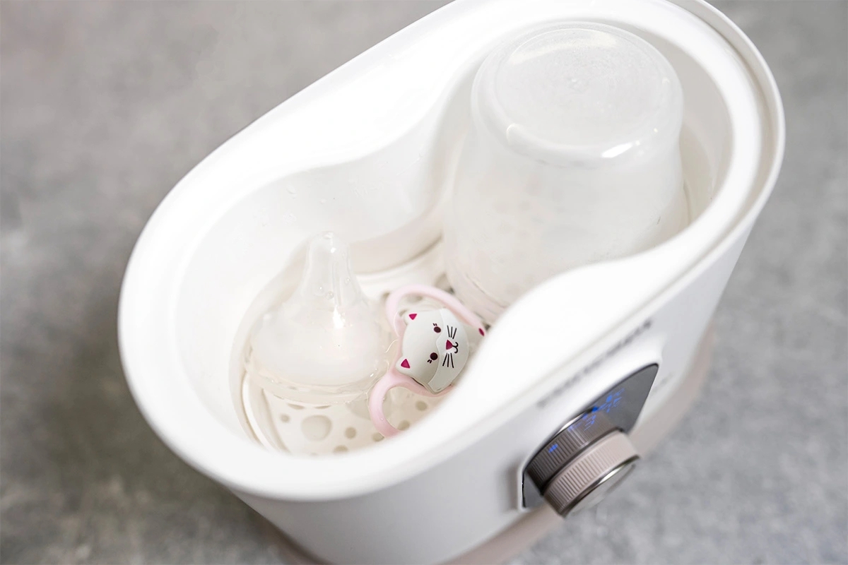 • No tendrá que perder tiempo con hervidos prolongados ni comprar un esterilizador de biberones, chupetes y demás accesorios: basta con seleccionar el programa de esterilización y el calentador se encargará de todo.