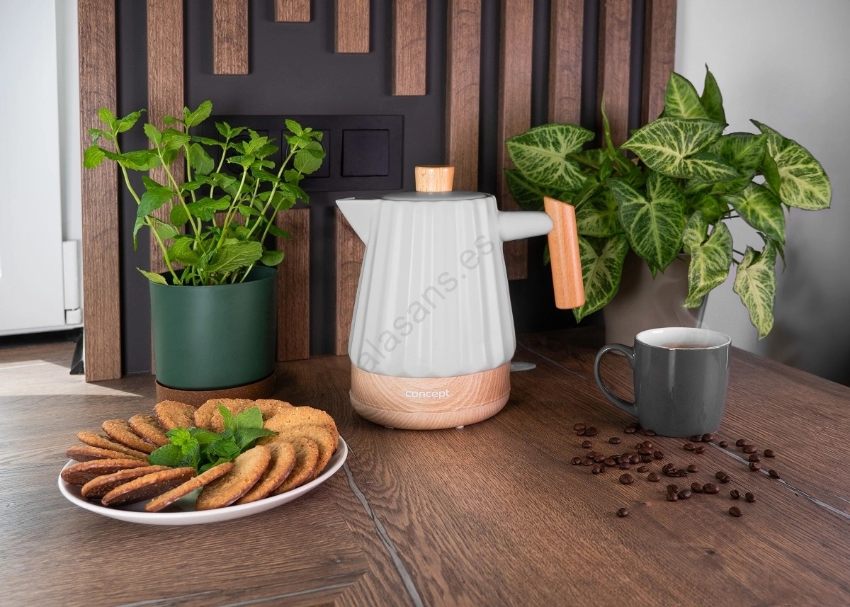 Concept RK0091 - Hervidor eléctrico rápido 1,5 l 1500W/230V gris claro/acabado en madera/cerámica