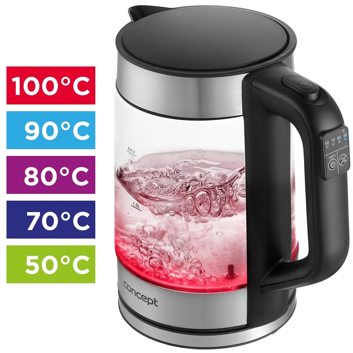 Concept RK4067 - Hervidor eléctrico con control de temperatura 1,7 l 2200 W/230 V de acero inoxidable