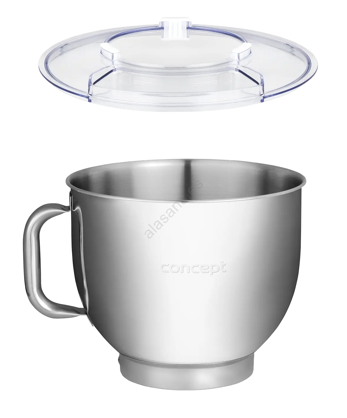 • Accesorios en el paquete: 2 ganchos amasadores, batidor totalmente metálico, pala mezcladora, recipiente de acero inoxidable con asa 7 l, tapa de plástico.