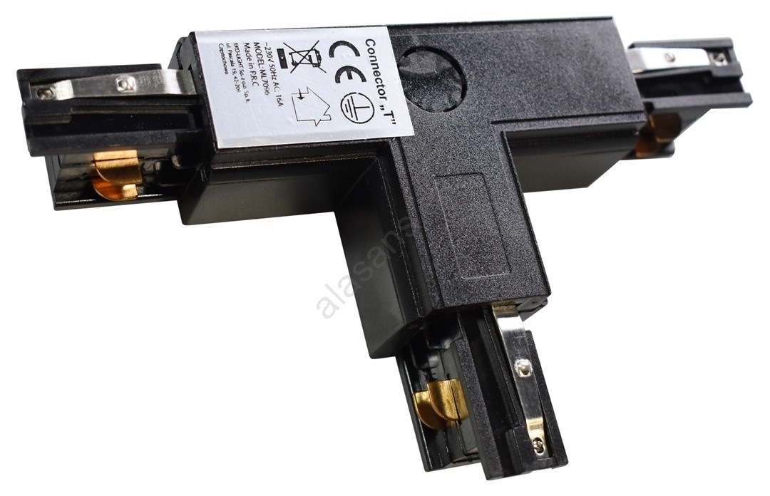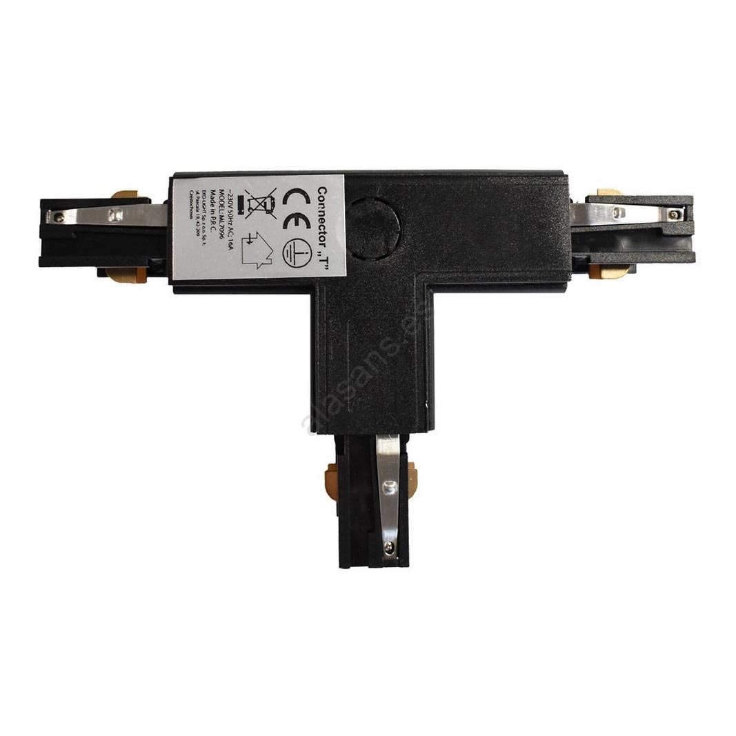 Conector trifásico para lámparas en el sistema de rieles TRACK negro tipo T
