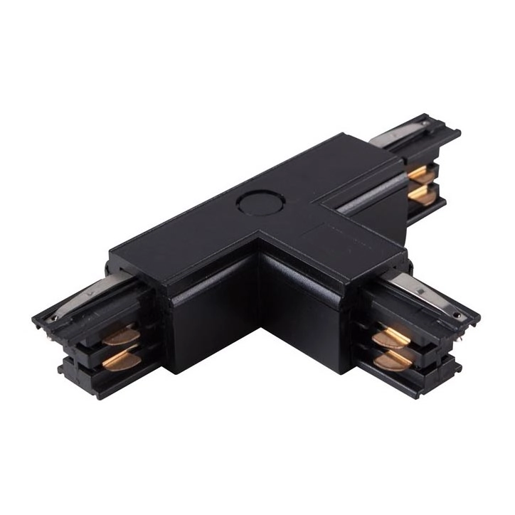 Conector trifásico para lámparas en el sistema de rieles TRACK negro tipo T