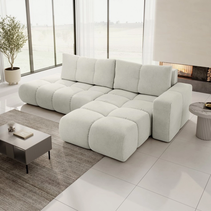 • Sofá esquinero tapizado convertible con arcón en L ALMADA, izquierdo, beige claro