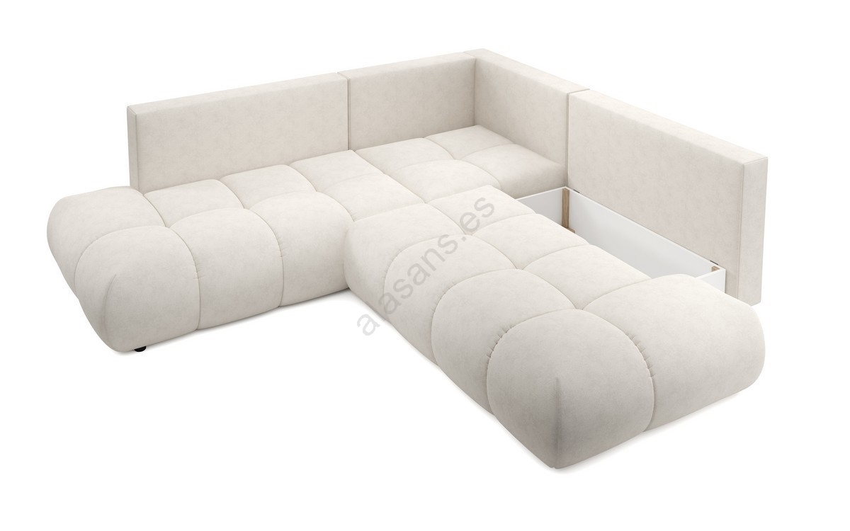 • Sofá cama esquinero tapizado ALMADA en L con arcón, lado derecho, beige