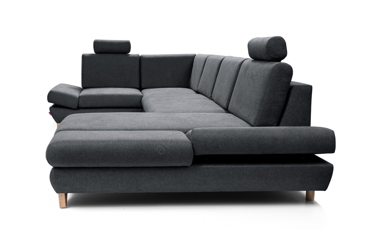 • Sofá rinconero tapizado en U convertible con arcón AVESTA antracita