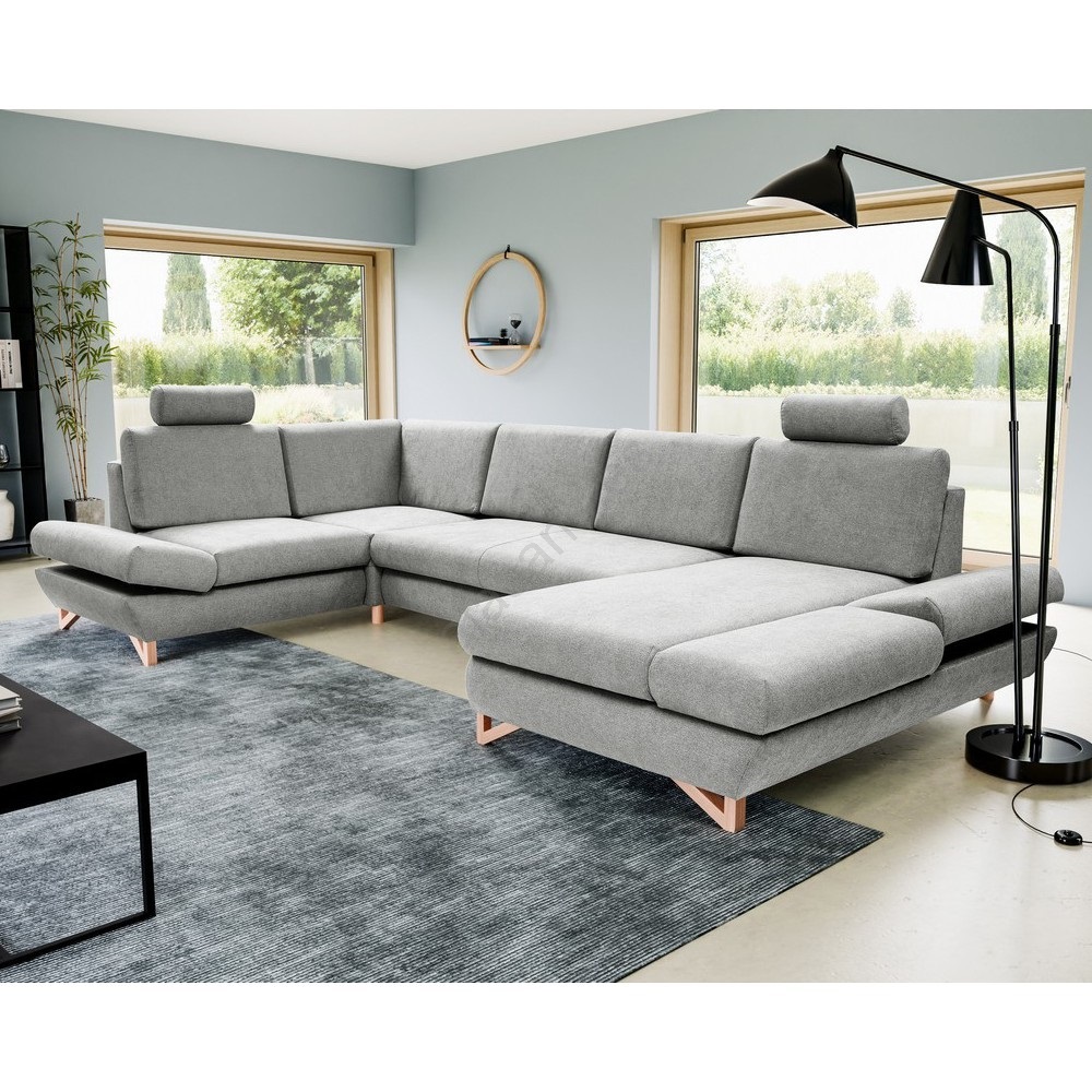 Sofá esquinero tapizado en U AVESTA, convertible y con amplio espacio de almacenamiento, gris