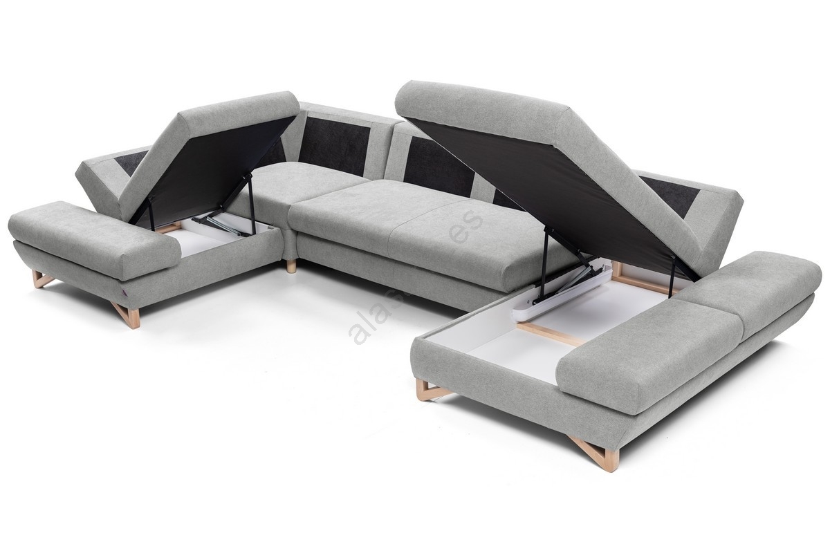 • Sofá esquinero tapizado convertible en U con arcón de almacenamiento AVESTA, gris