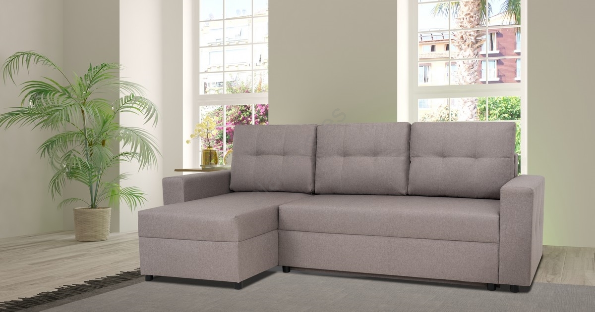 Sofá esquinero universal con función de cama y espacio de almacenamiento SEVILLA gris