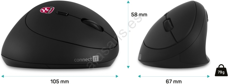 CONNECT IT CMO-2600-BK - Ratón inalámbrico ergonómico 800/1200/1600 DPI, 1x pila AA, negro