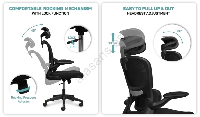 • Respaldo de cabeza ajustable en altura con un rango de 8,2 cm.
