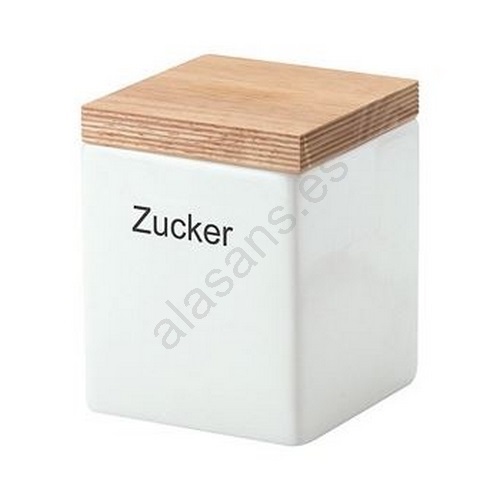 Continenta C3912 - Caja de cerámica para alimentos con tapa 10x10x12,5cm madera de caucho