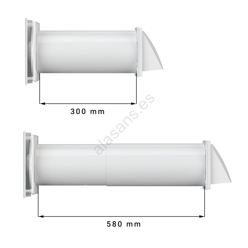 • El conducto telescópico, con un rango de 300 a 580 mm, permite una adaptación sencilla a distintos espesores de pared.