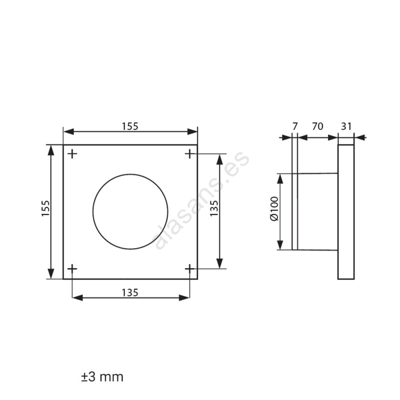 • El ventilador es compatible con conductos de diámetro 100 mm.