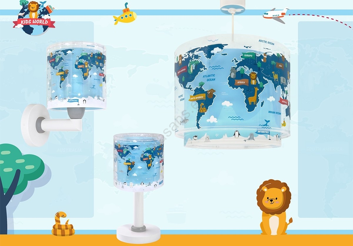 • Dalber 40679 - Lámpara de pared infantil WORLD 1xE27/15W/230V azul