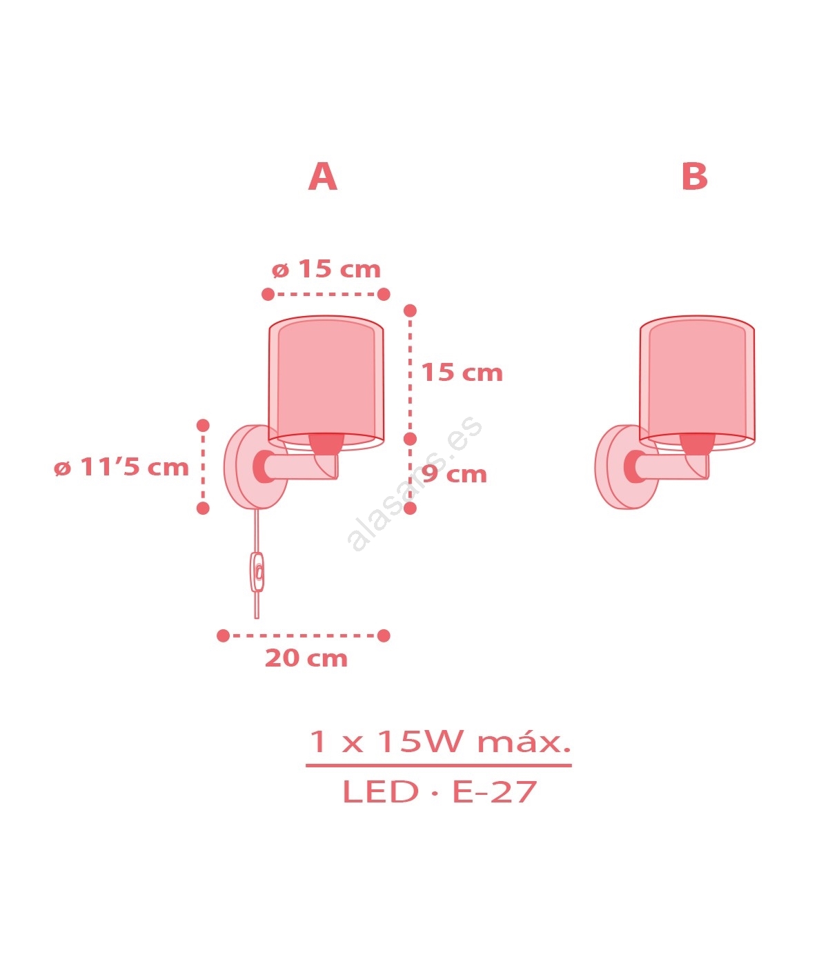 • Dalber 60919 - Aplique de pared infantil PRINCESS DANCE 1xE27/15W/230V rosa