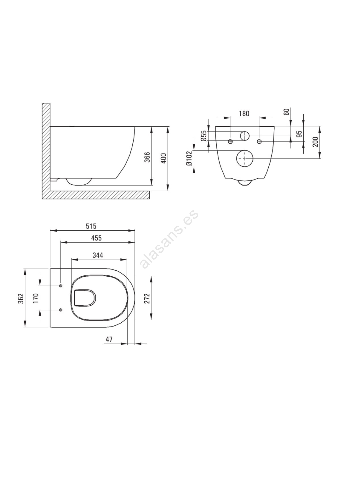 • Inodoro suspendido fabricado en cerámica de alta calidad.