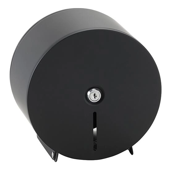• Dispensador cilíndrico para papel higiénico con diámetro de 200 mm en elegante color negro.