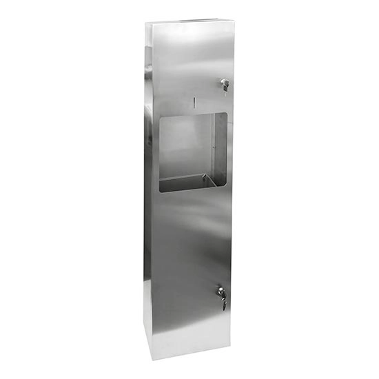 • Dispensador de pie para toallas de papel con papelera integrada.