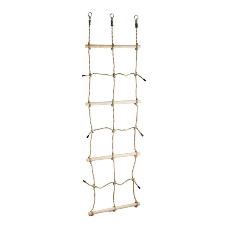 • Red de escalada con peldaños de madera y 3 anillas para colgar.