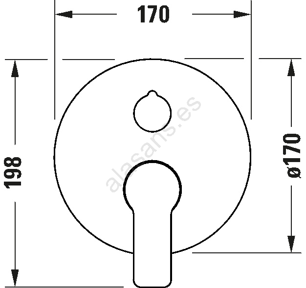 • El diseño del mezclador se complementa con una roseta circular de cubierta de aproximadamente 170 mm de diámetro, que realza su aspecto limpio y moderno.