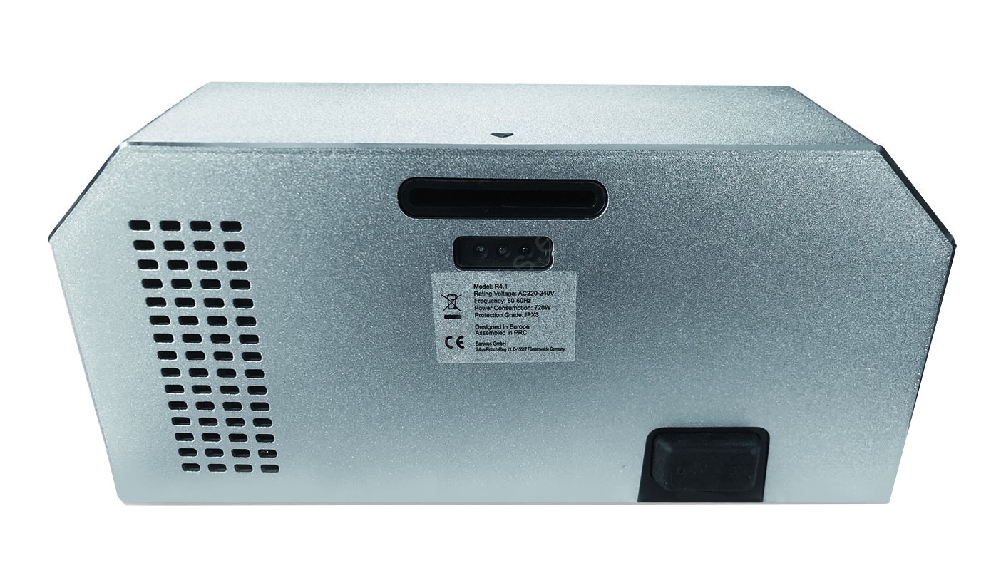 • Esterilización automática del aire (se puede apagar) - tras el último uso, el secamanos purifica el aire mediante ionización, filtro HEPA y luz UV. El motor funciona silenciosamente a baja velocidad y limpia el aire (10 W) durante 60 minutos.